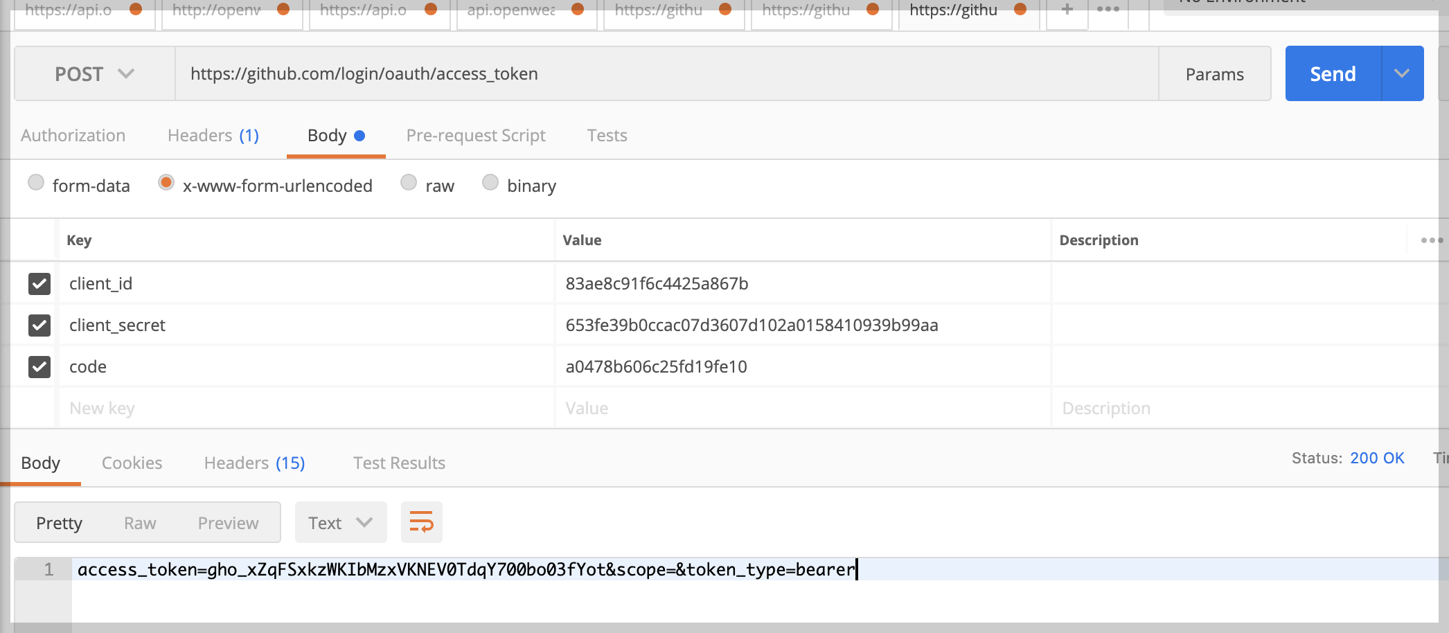 아까 Query String으로 전달받은 Authorization Code 는 일시적인 값이다. Github에서는 해당 코드가 10분 동안만 유효한다. 즉, 10분이 지나면 만료가 되니까 그 전에 Access Token으로 바꿔야 한다.